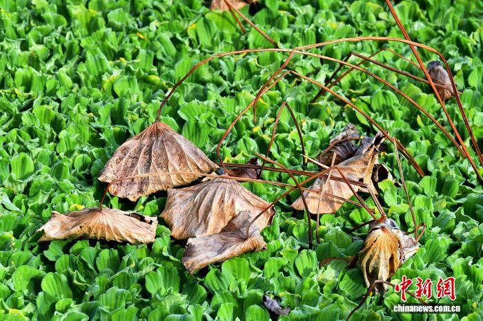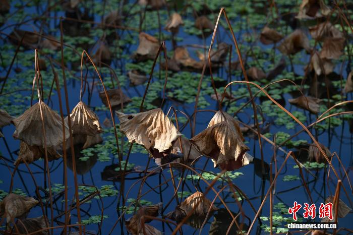 12月20日,正在位于祸州的祸修农林年夜黉舍园荷花池,池内乱的残荷姿势各别,别具风味,如同1幅幅绘做。中新社记者 弛斌 摄